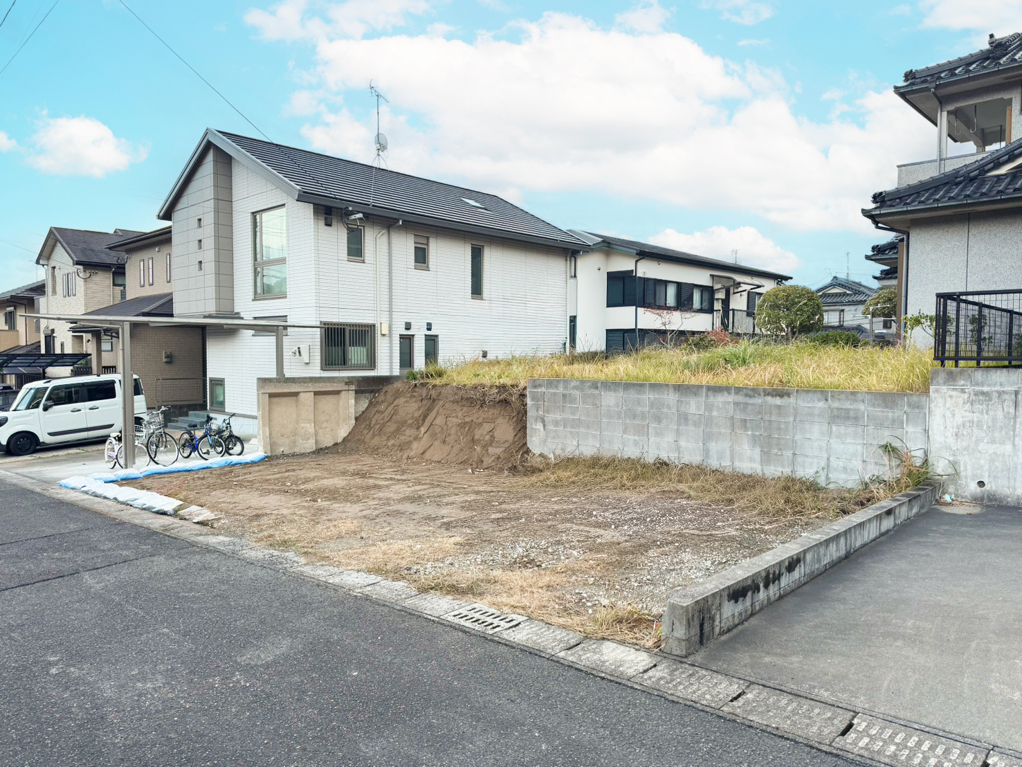 落ち着いた交通量の前面道路。送迎や買い物の出入りもスムーズで、日常の動きに余裕が生まれます。